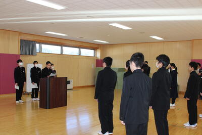 20日間の冬休みを終え、本日から3学期が始まりました。始業式では、各学年と生徒会の代表が3学期の抱負や決意を力強く発表しました。