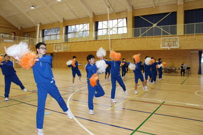 2月21日(金)に3年生激励会を実施しました。3年生への感謝の想いと県立高校入試に向けた激励の気持ちを込め、生徒会執行部を中心に1・2年生が着々と準備を進めてきました。当日は、連想ゲーム等の活動や、入念に練習してきた1・2年生のダンス披露、3年生からのクイズ出題等があり、大いに盛り上がりました。