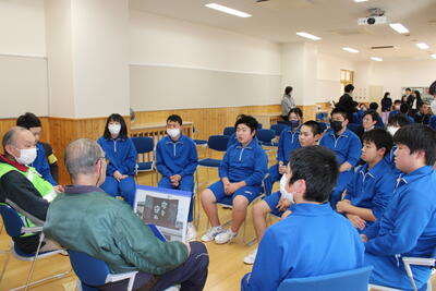 生徒達からは「津波が大砲のような音で、想像以上の威力であることや、各地域からたくさんの支援物資が送られていたことを知った。」、「小本の方々の苦労や努力のおかげで、今当たり前のように暮らすことができているのだと思った。」、「震災のことを風化させないために後世に語り継ぐことの大切さを学んだ。」などといった声が聞かれ、自分事として捉え、防災意識を高めることができました。