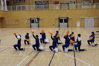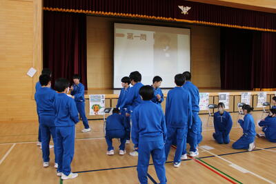 全校生徒が一緒にクイズやゲームを楽しんだ後、1,2年生から3年生に向けてダンスとエールで感謝と激励の気持ちを伝えました。